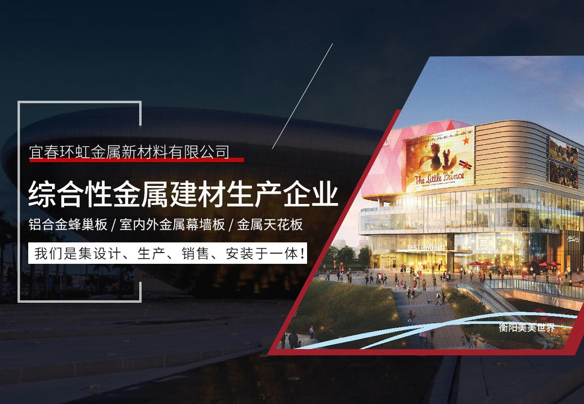 宜春環(huán)虹金屬新材料有限公司總部位于廣東省佛山市創(chuàng)立于2011年。公司建設(shè)有高標準的現(xiàn)代化工業(yè)生產(chǎn)廠房及完備的生活配套設(shè)施,是一家生產(chǎn)鋁單板、鋁合金蜂窩板、室內(nèi)外金屬幕墻板、金屬天花板等新型建筑裝飾材料的現(xiàn)代化企業(yè)。從產(chǎn)品設(shè)計到生產(chǎn)檢驗、施工安裝及服務(wù)都嚴格按照ISO09001和ISO14001 2015質(zhì)量與環(huán)境保證體系實行嚴格的控制和管理,并著力為客戶提供優(yōu)良的個性化服務(wù)和相關(guān)解決方案。公司擁有一批高素質(zhì)、高水平的...